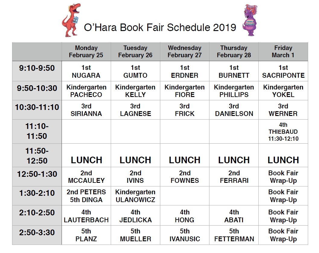 1. Our annual Scholastic Book Fair will be held from Monday, February 25th through Friday March 1st in the O’Hara School Library. Students will have an allotted time during the school day to visit the Book Fair and buy books and other items. You are definitely welcome to join your child to shop in the Library during this time!