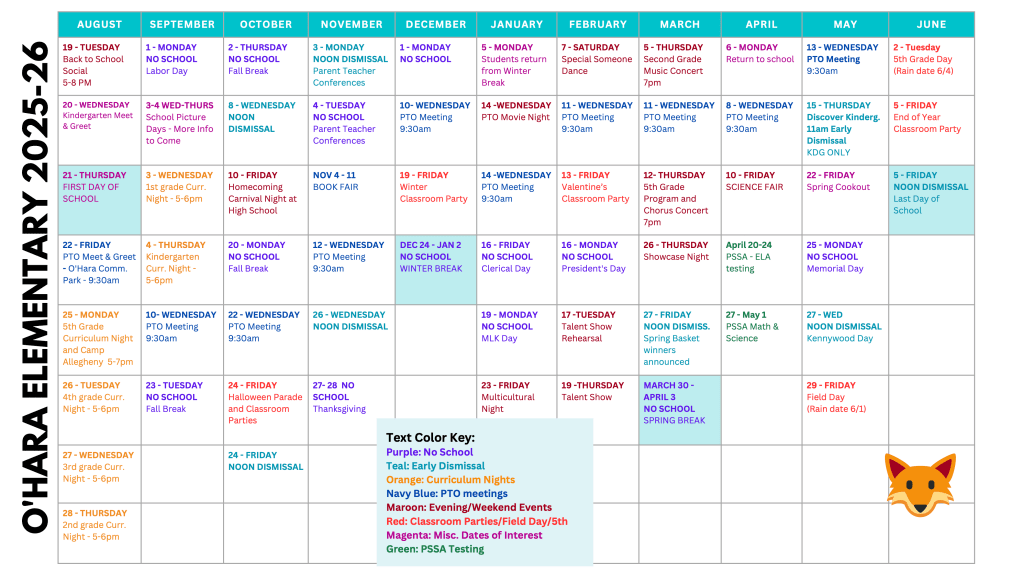 Calendar click here to download the 2025-2026 PTO Calendar Official Fox Chapel Area School District Calendar
